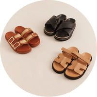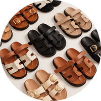 Wondering what sandals are best for the beach, leave it to us! For the ultimate beachy vibe, go for our strappy sandals. They're lightweight, comfortable, and perfect for pairing with your favorite summer dress or shorts. Pool party you say? We've got a luxe terry fabric to keep you looking on point. A casual lunch or stroll with the girls? Look no further than our platform slides, complete with footbed support and chic details!
